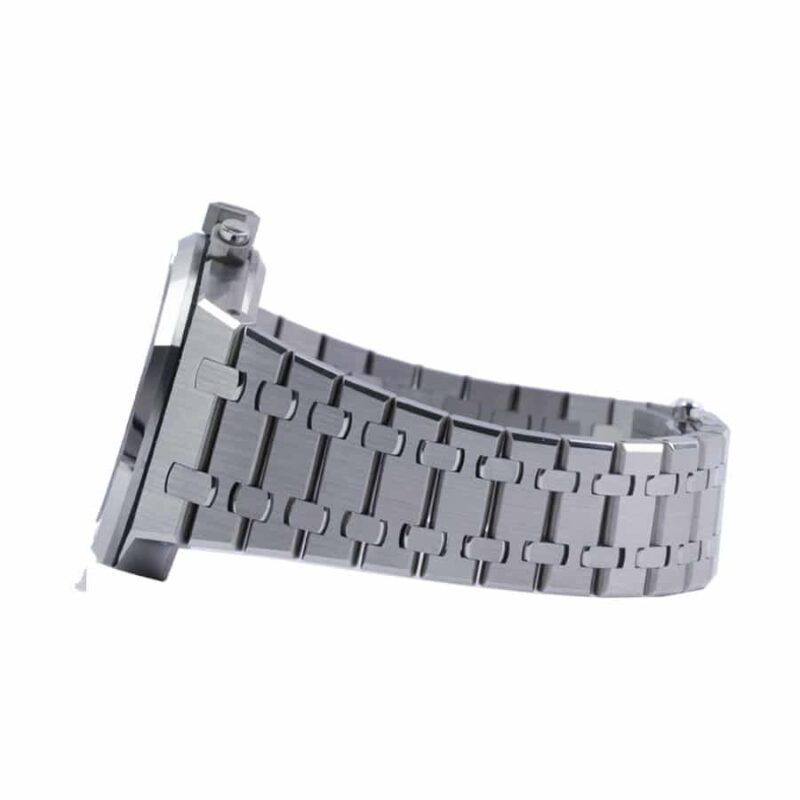 The Audemars Piguet Royal Oak 26331ST.OO.1220ST.03 is a luxury watch. It features an automatic movement with a caliber of 2385 and a power reserve of 60 hours. It is certified within COSC limits for precision of -3/+3 seconds per day. The case is made of 904L stainless steel and has a sapphire crystal. The bezel is also made of 904L stainless steel and the bracelet is a Royal Oak style with adjustable links.