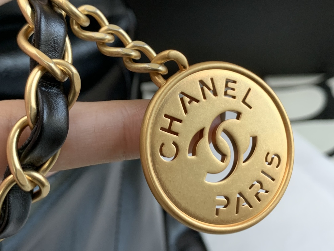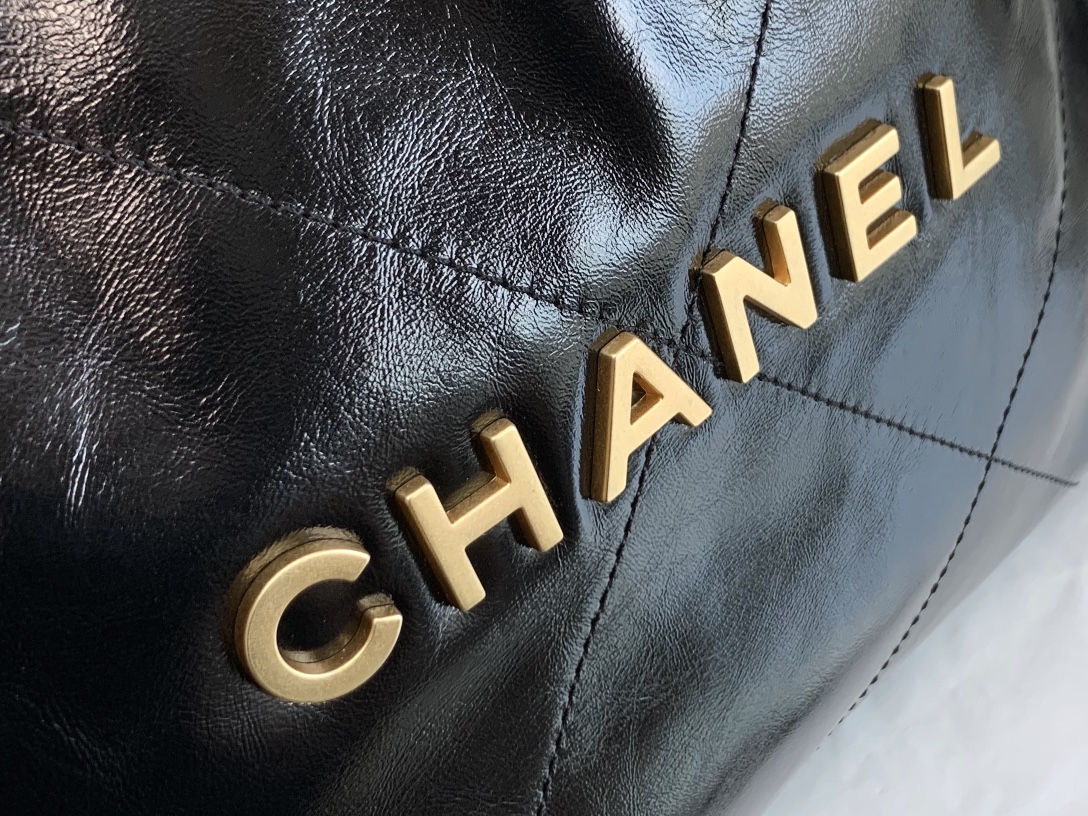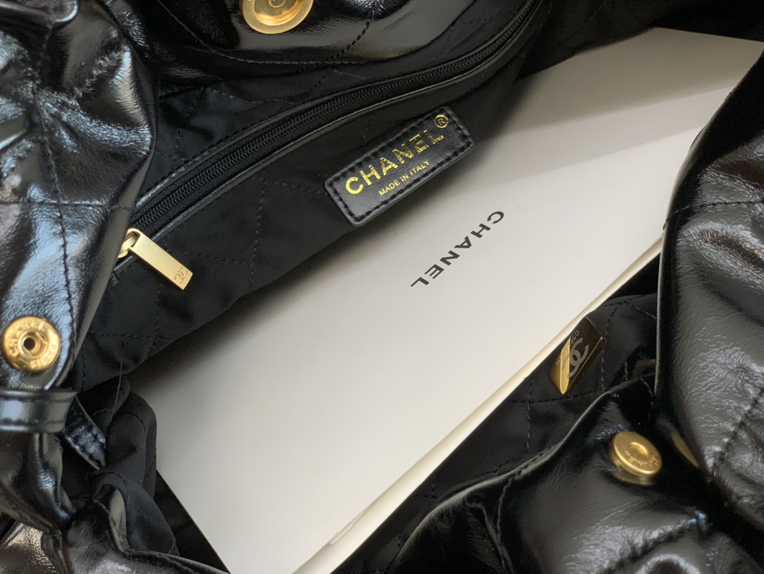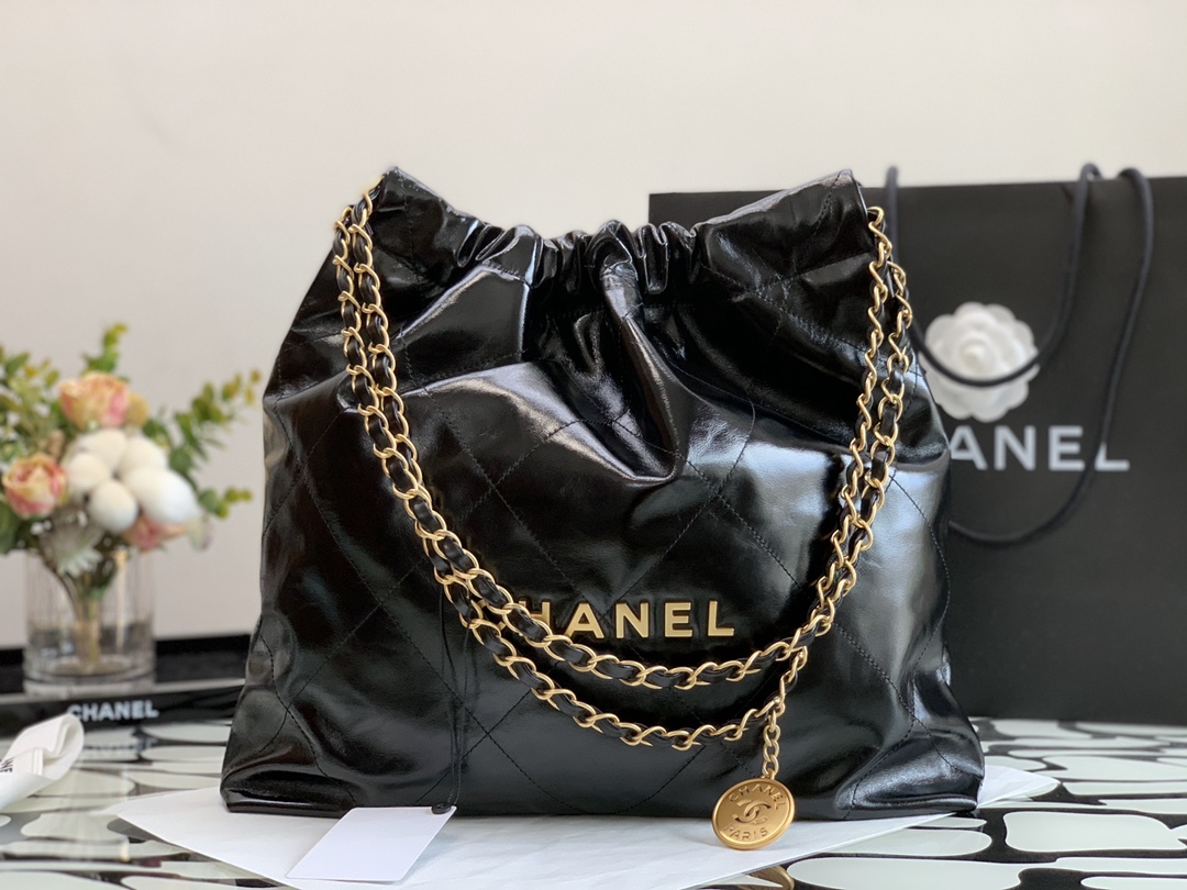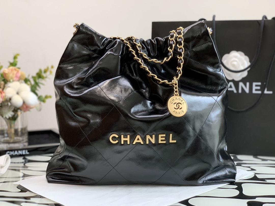 CH@NEL 22 HANDBAG SHINY CALFSKIN GOLDTONE METALLIC AS3261 (42*39*8cm)