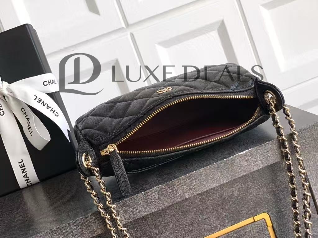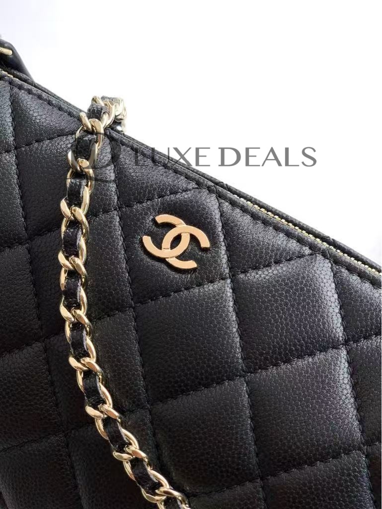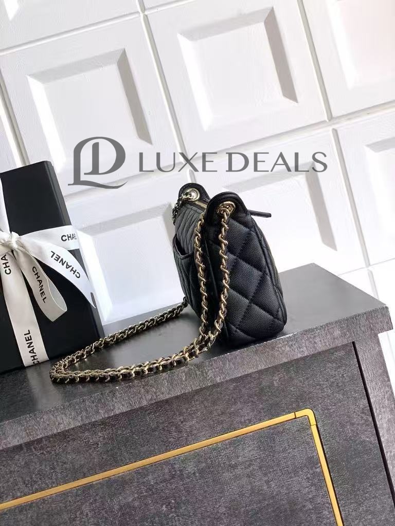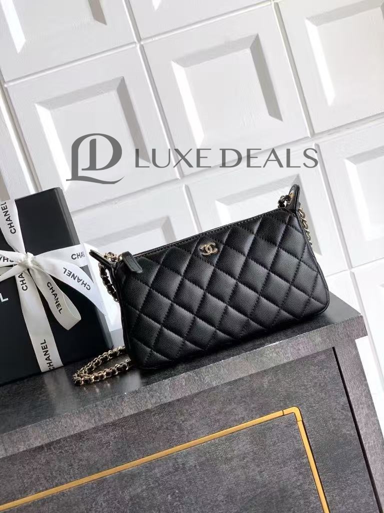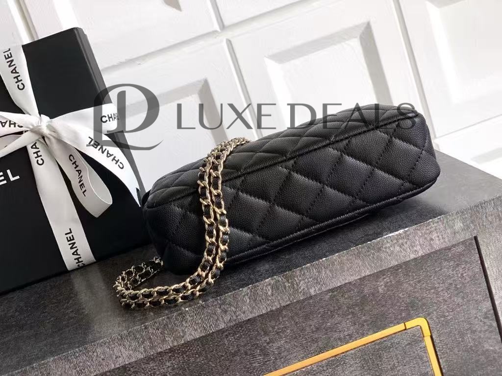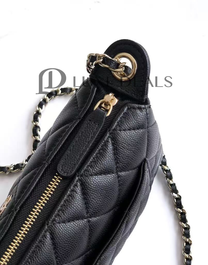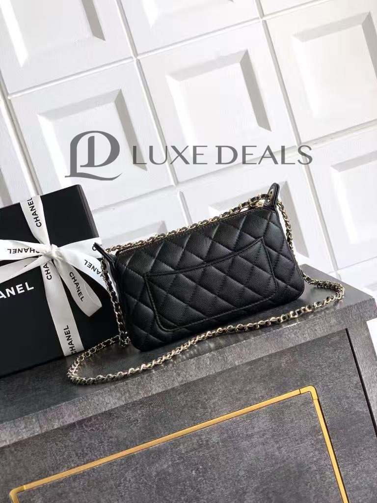 CH@NEL GRAINED CALFSKIN 25B CLUTCH WITH CHAIN BAG IN BLACK 253911 (21*12*5.5.cm)