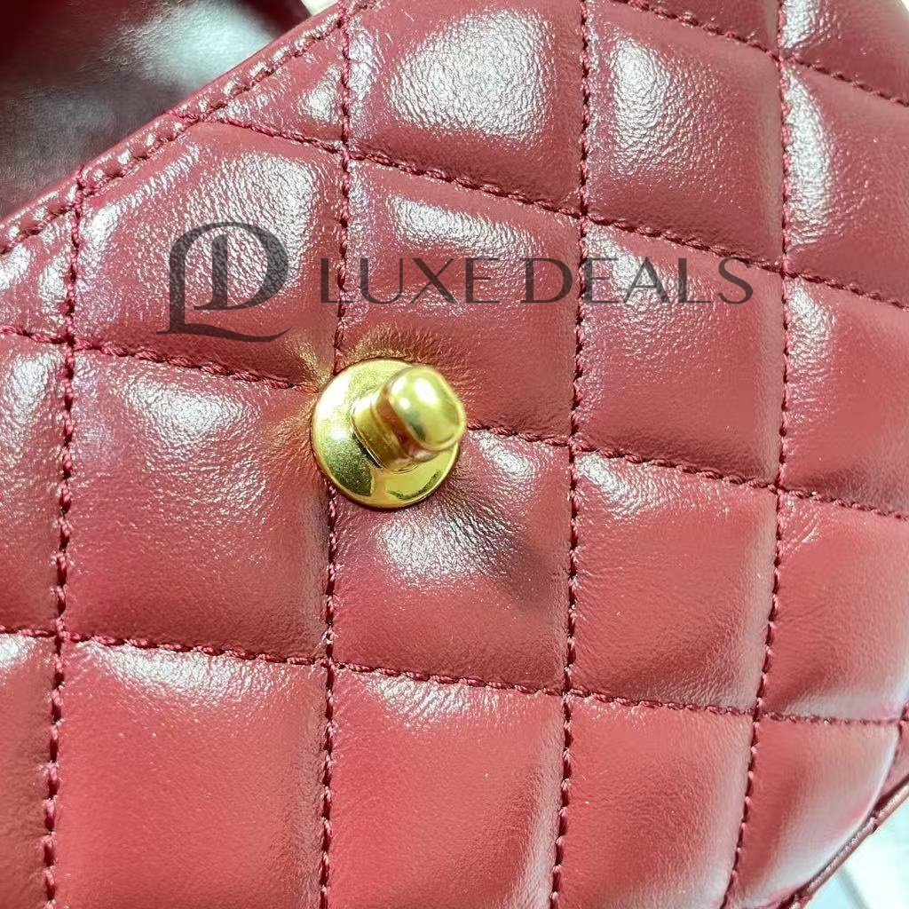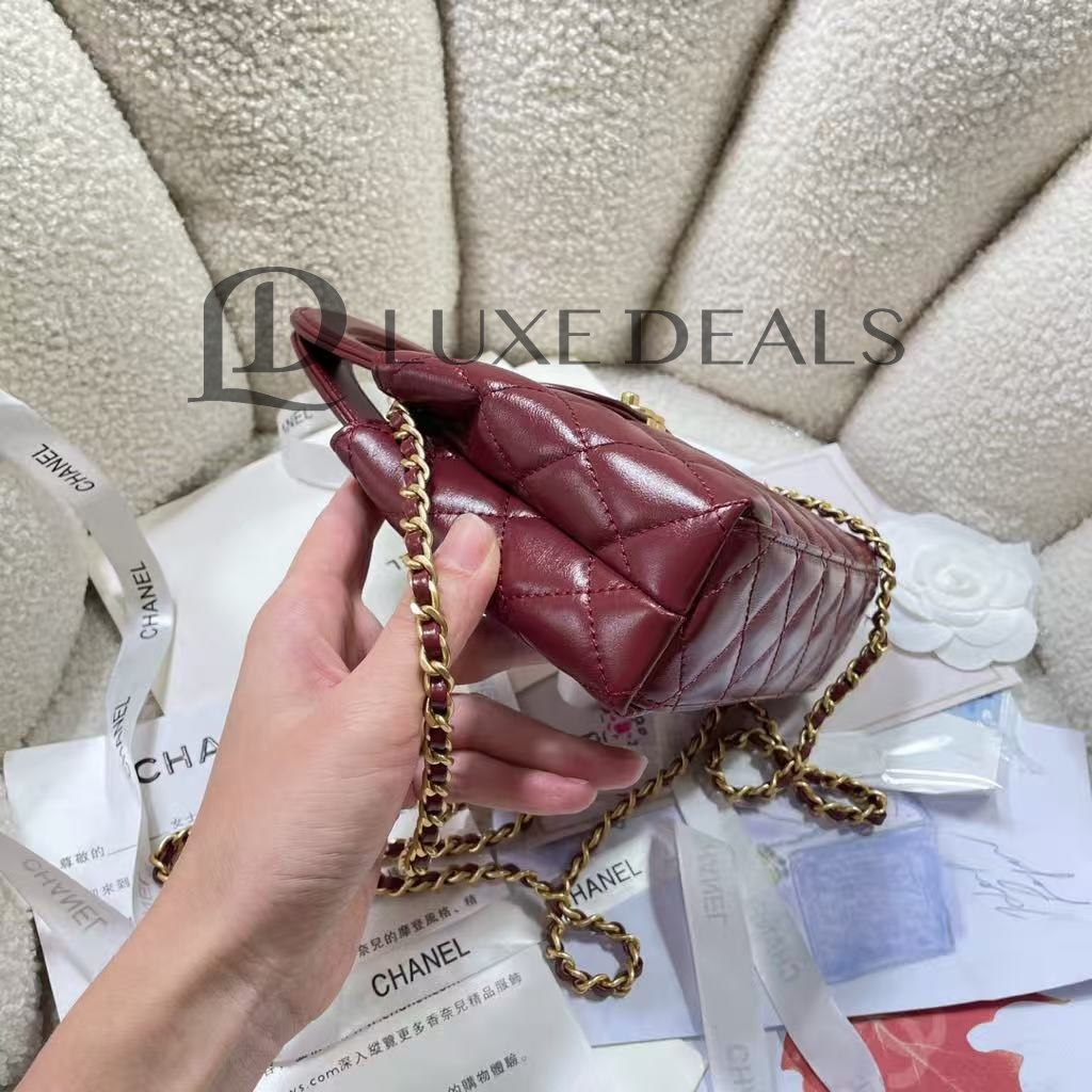 CH@NEL MASTER BROWN QUILTED CALFSKIN MINI KELLY BRUSHED GOLD HARDWARE AS4416 (19*13*7cm)