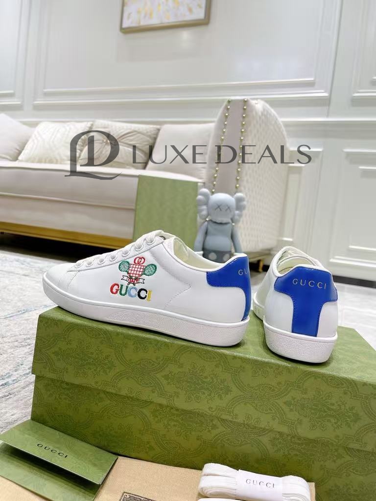 GUCCI CALFSKIN MIRO SOFT TENNIS EMBROIDERED WOMENS ACE SNEAKERS 602684