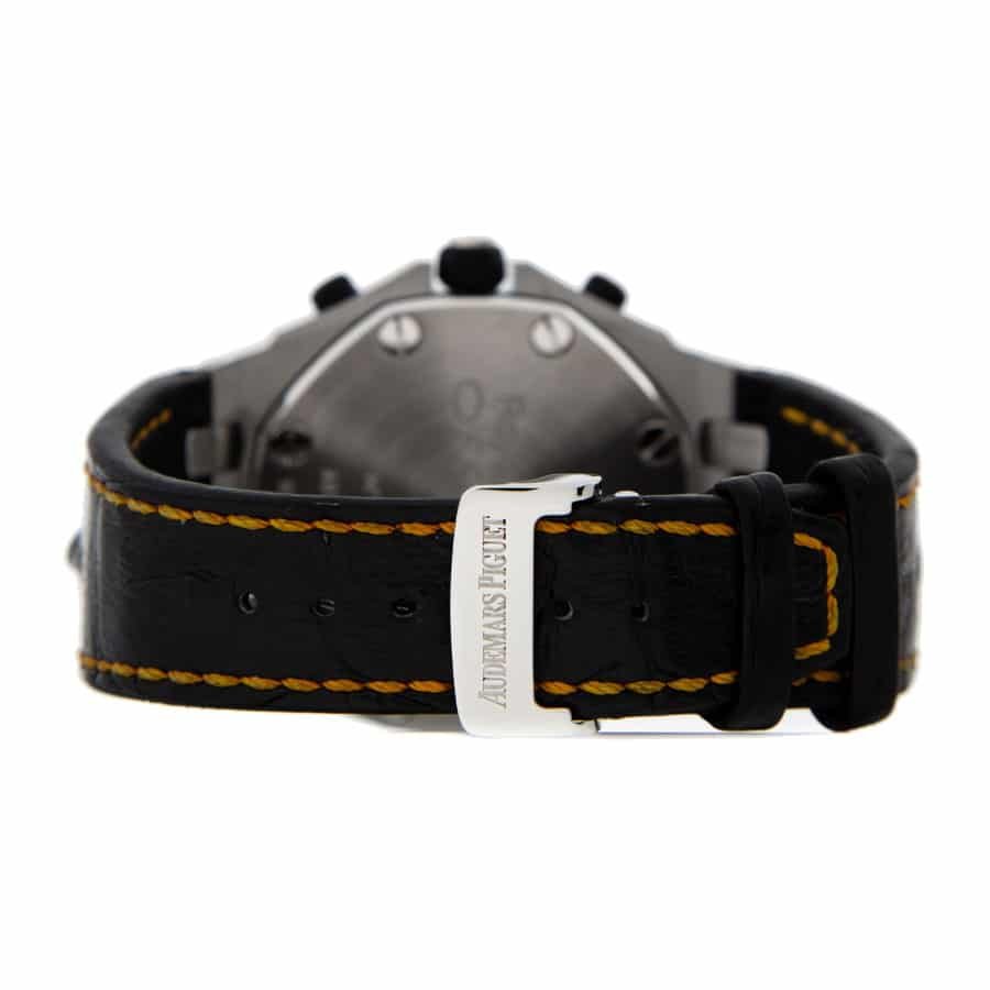 The Audemars Piguet Royal Oak Offshore Volcano 26170ST.OO.D101CR.01 Replica is a high quality watch. It features a 904L stainless steel case and bezel. with a sapphire crystal and a 42.00mm size. The movement is an Automatic AP 3126 / 3840 caliber with a 60-hour power reserve and a precision of (-3/+3 sec/day) within COSC certification limits. The black dial features Arabic numerals and Royal Oak hour-markers. with 904L stainless steel stick hands. The black crocodile leather bracelet is adjustable for all sizes. and is secured with a 904L stainless steel AP folding clasp.