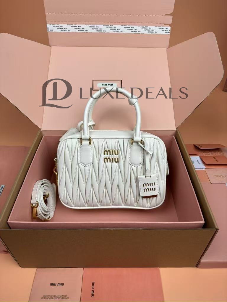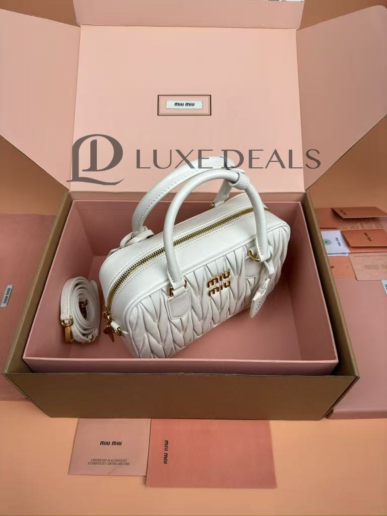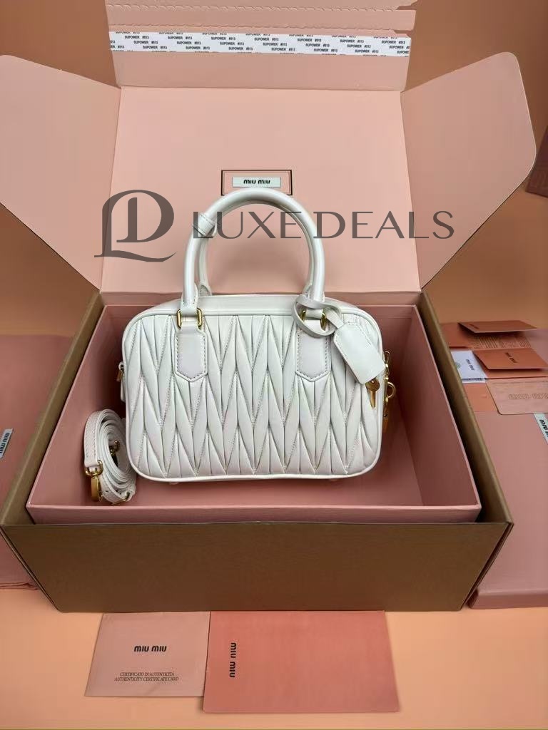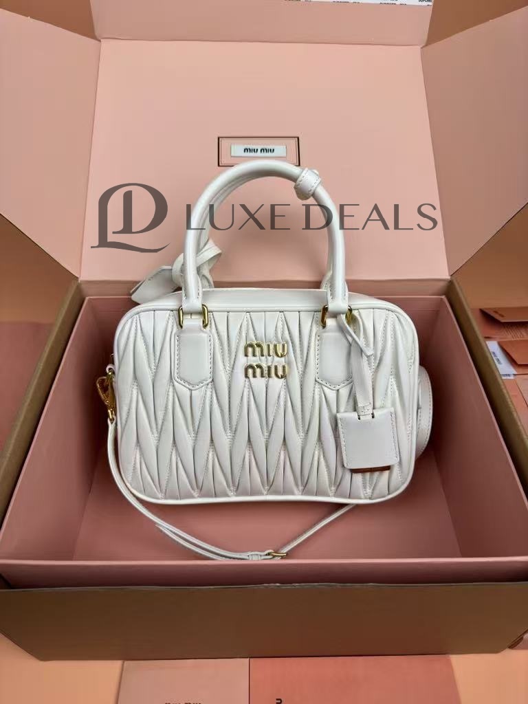 MIU MIU ARCADIE MATELASSÉ NAPPA LEATHER HANDBAG 5BB124 (24*17*7.5cm)