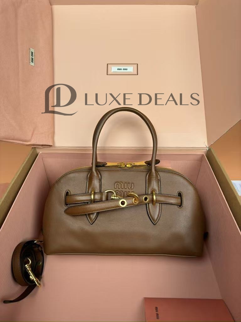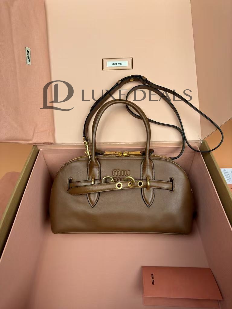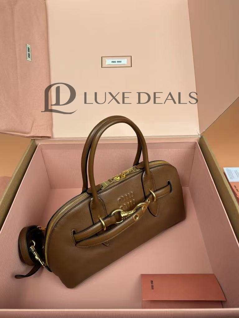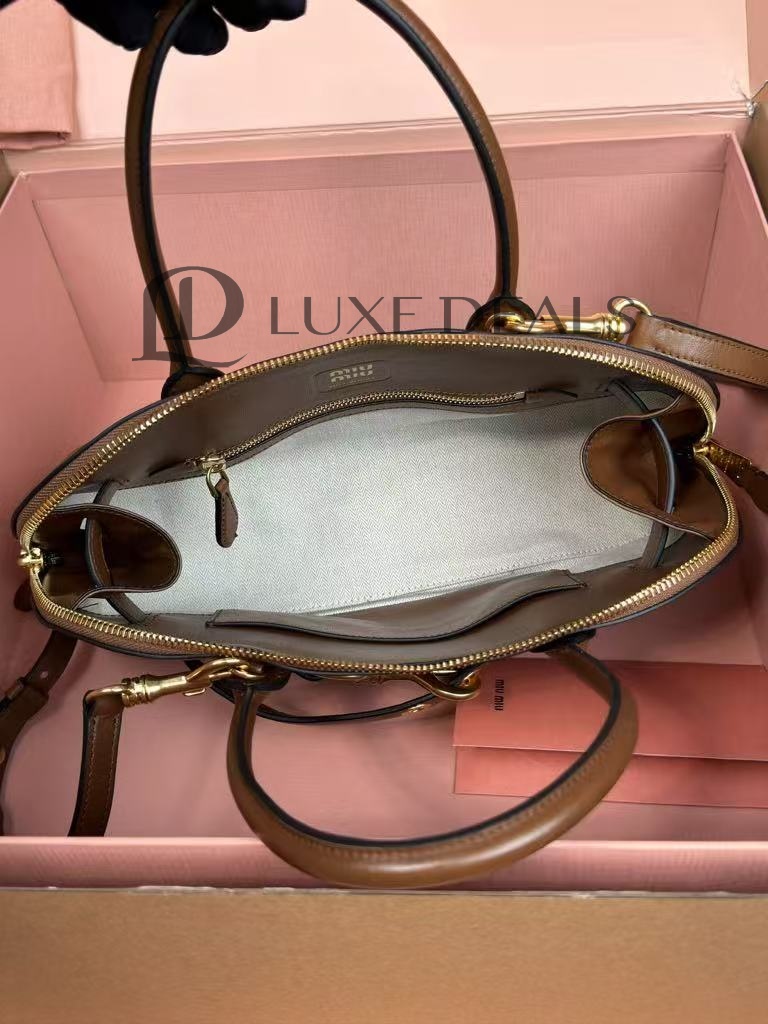 MIU MIU AVENTURE NAPPA LEATHER BROWN HANDBAG 5BB168 (33*17*11cm)