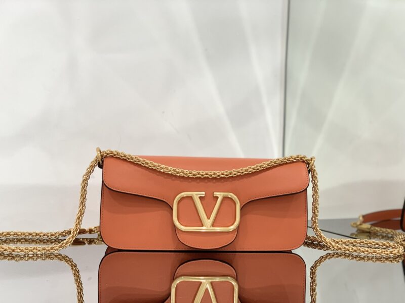 Valentino Garavani Locò Shoulder Bbag In Calfskin With Metallic VLogo-27*13*6CM