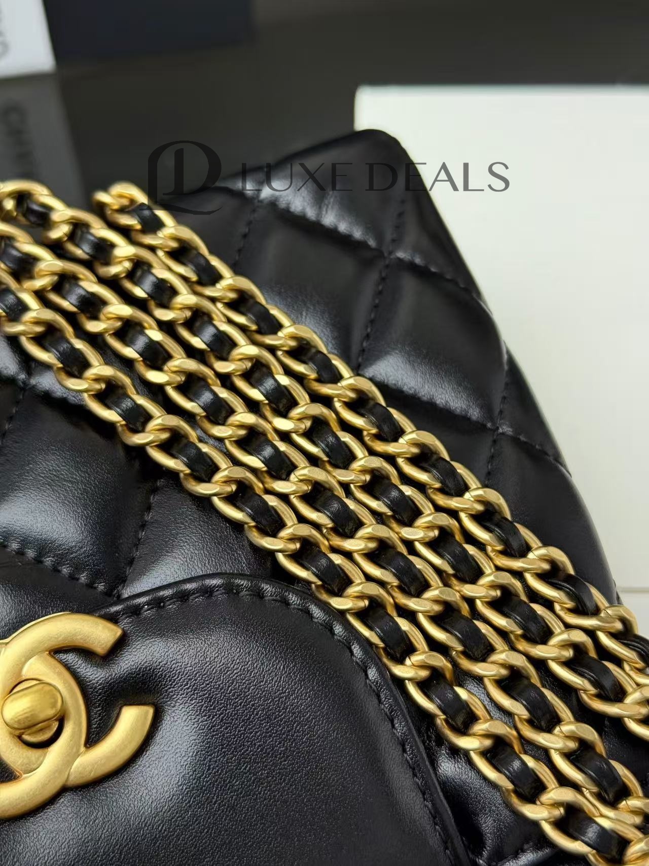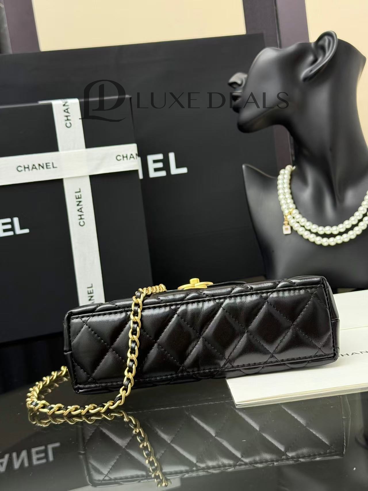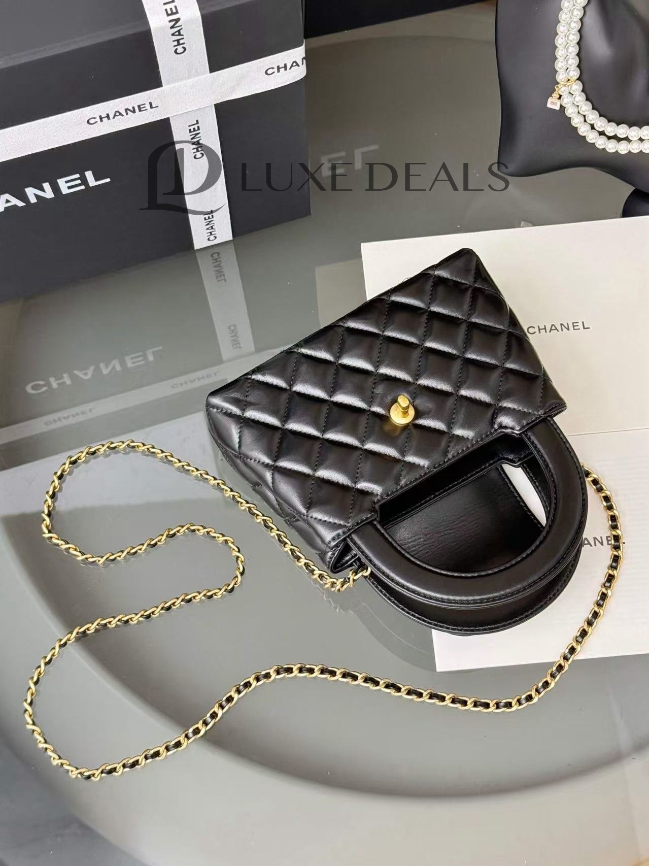 CH@NEL MASTER SHINY AGED CALFSKIN QUILTED KELLY MINI NANO SHOPPER AP3435 (12.5*8*4см)