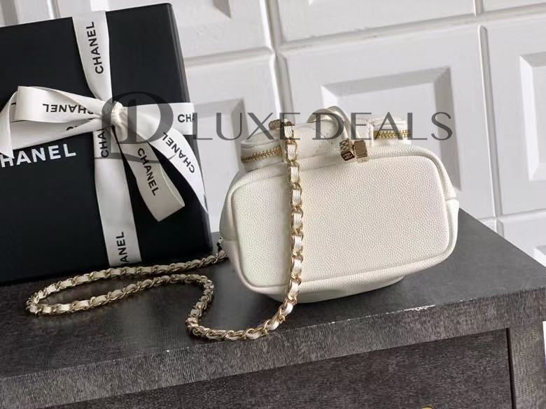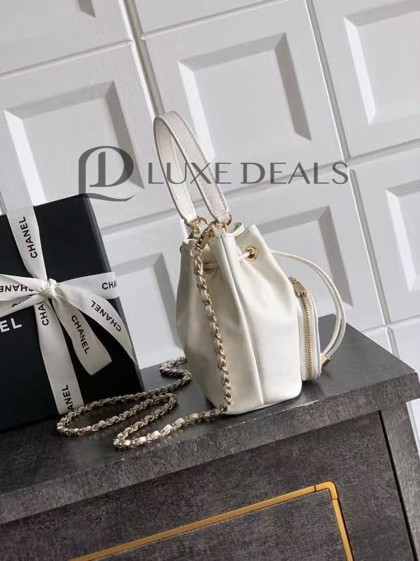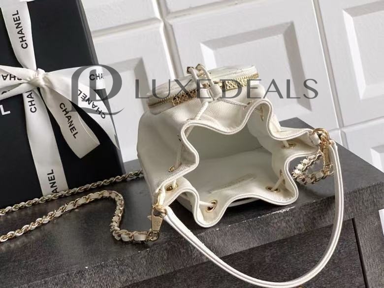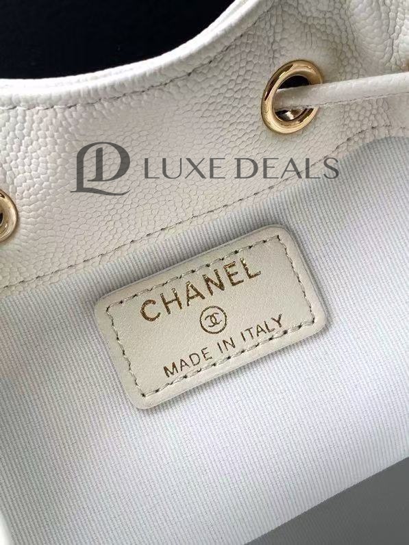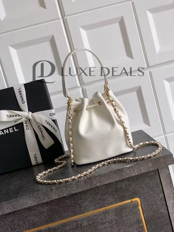CH@NEL CAVIAR QUILTED MINI CC POCKET BUCKET BAG WHITE AP2913 (12.5*10*7см)