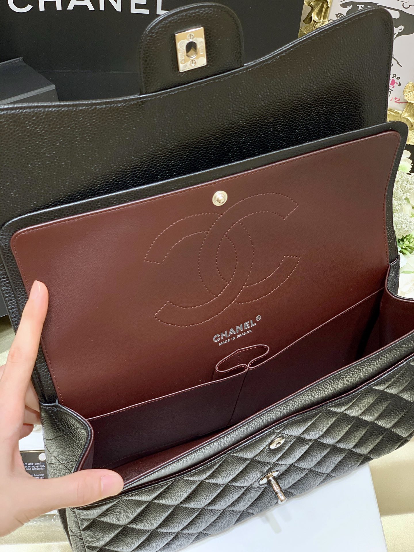 Ch@nel Flap Bag-Cavir Leather-Silver-30CM