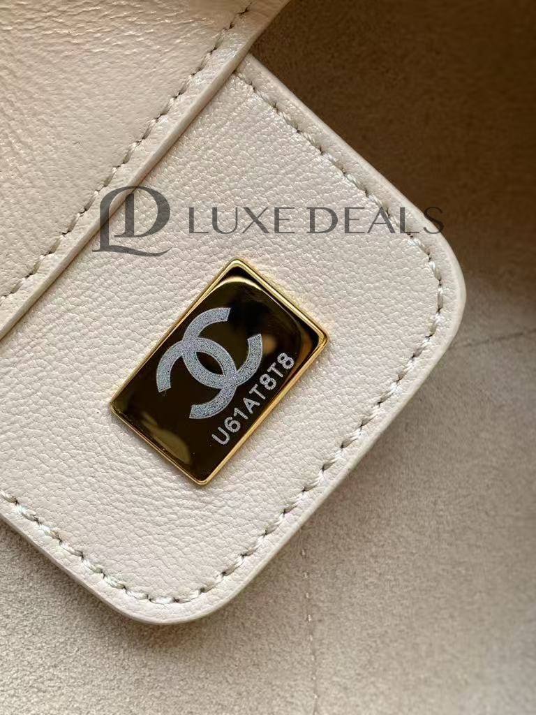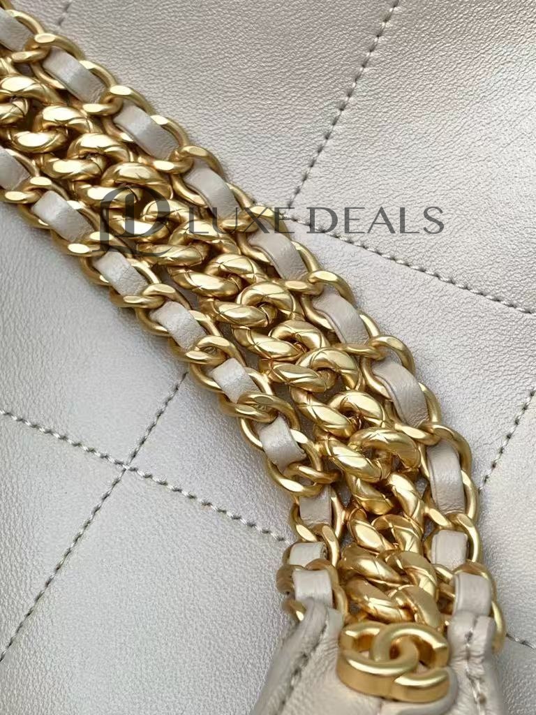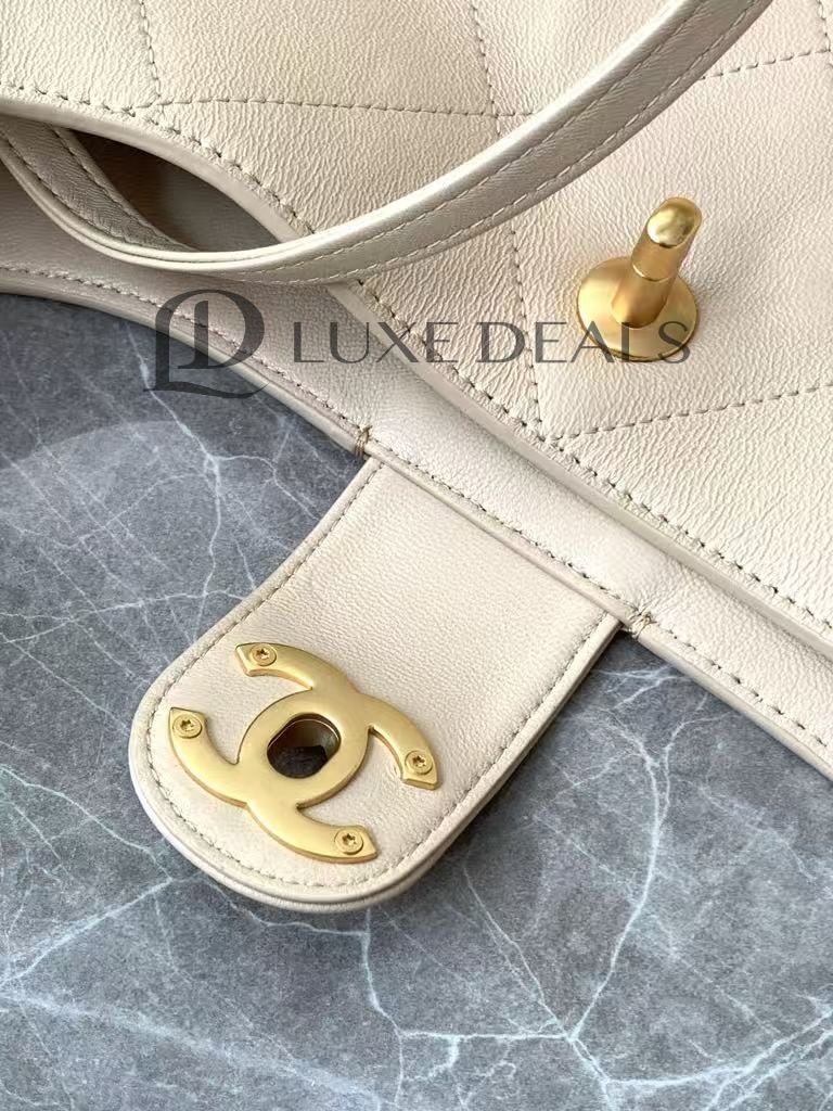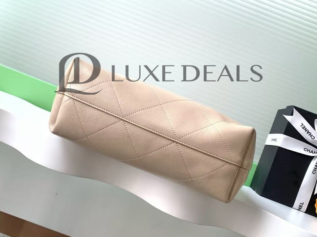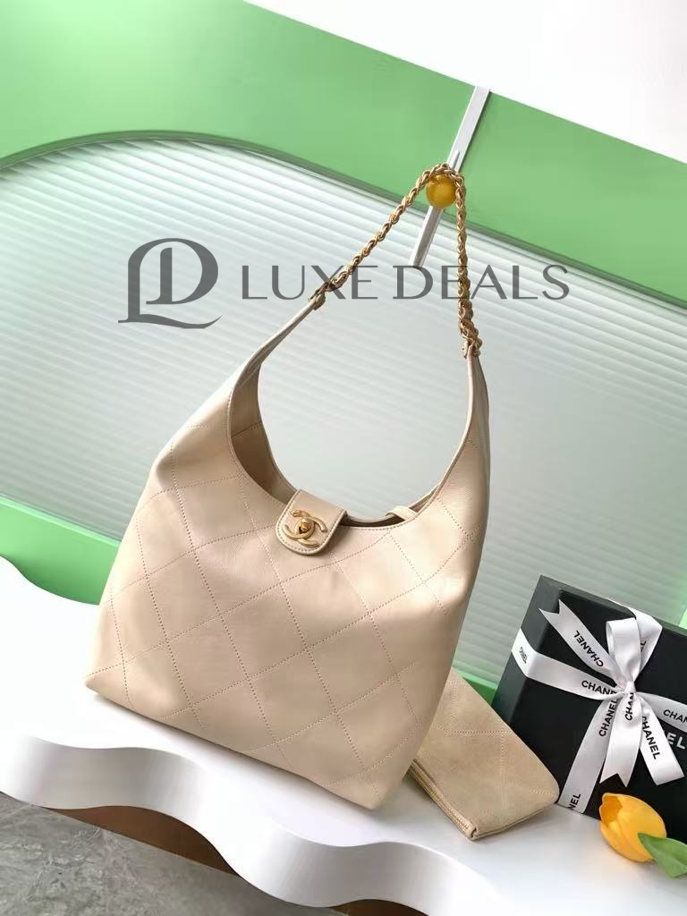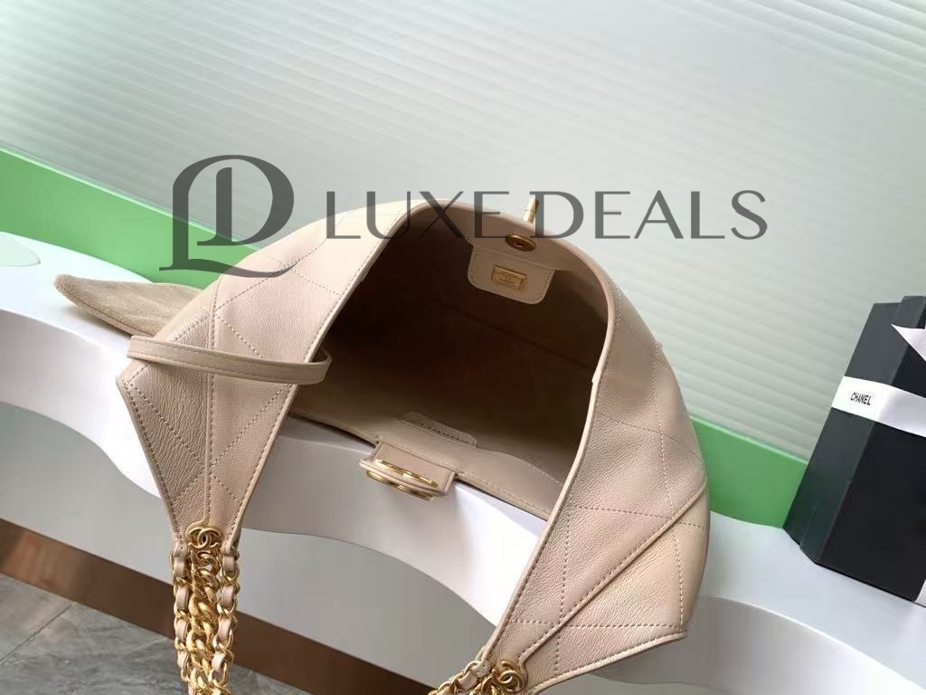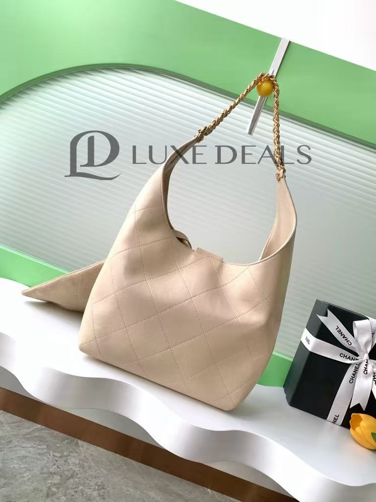 CH@NEL БЛЕСТЯЩАЯ ОВЧИНА СТЕГАНЫЙ ХОБО БЕЖЕВЫЙ(35*30*14)