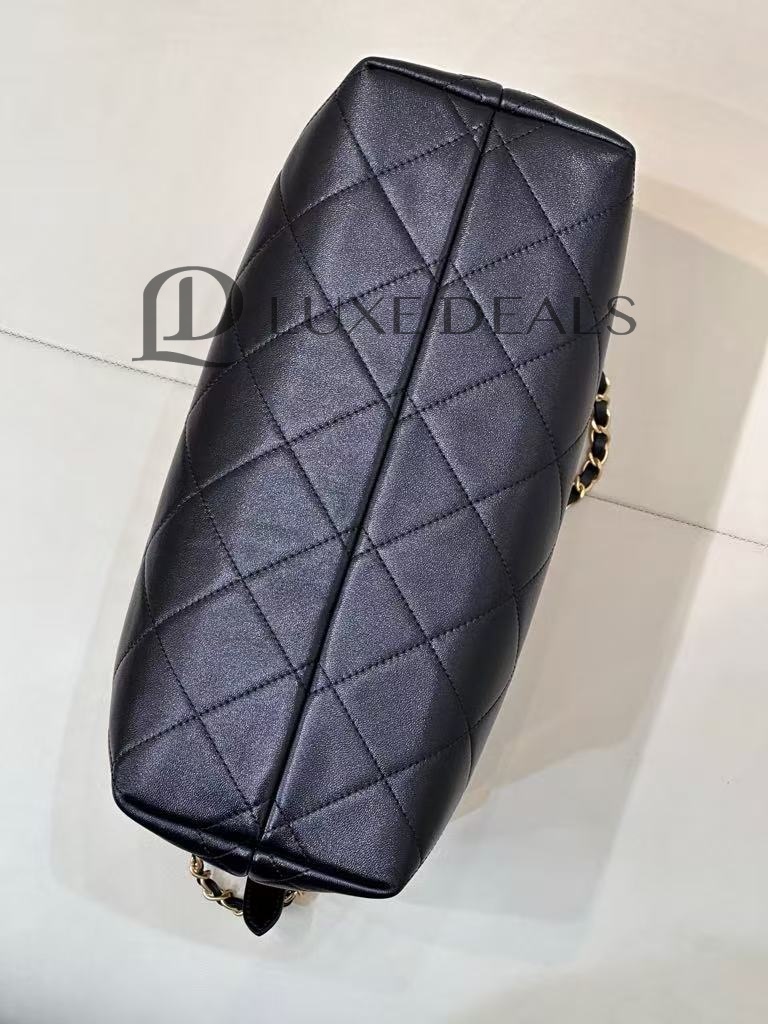 CH@NEL SHOPPING BAG SUEDE CALFSKIN, SHINY LAMBSKIN & GOLD-TONE METAL BEIGE & BLACK AS5634 (36*24*12cm)