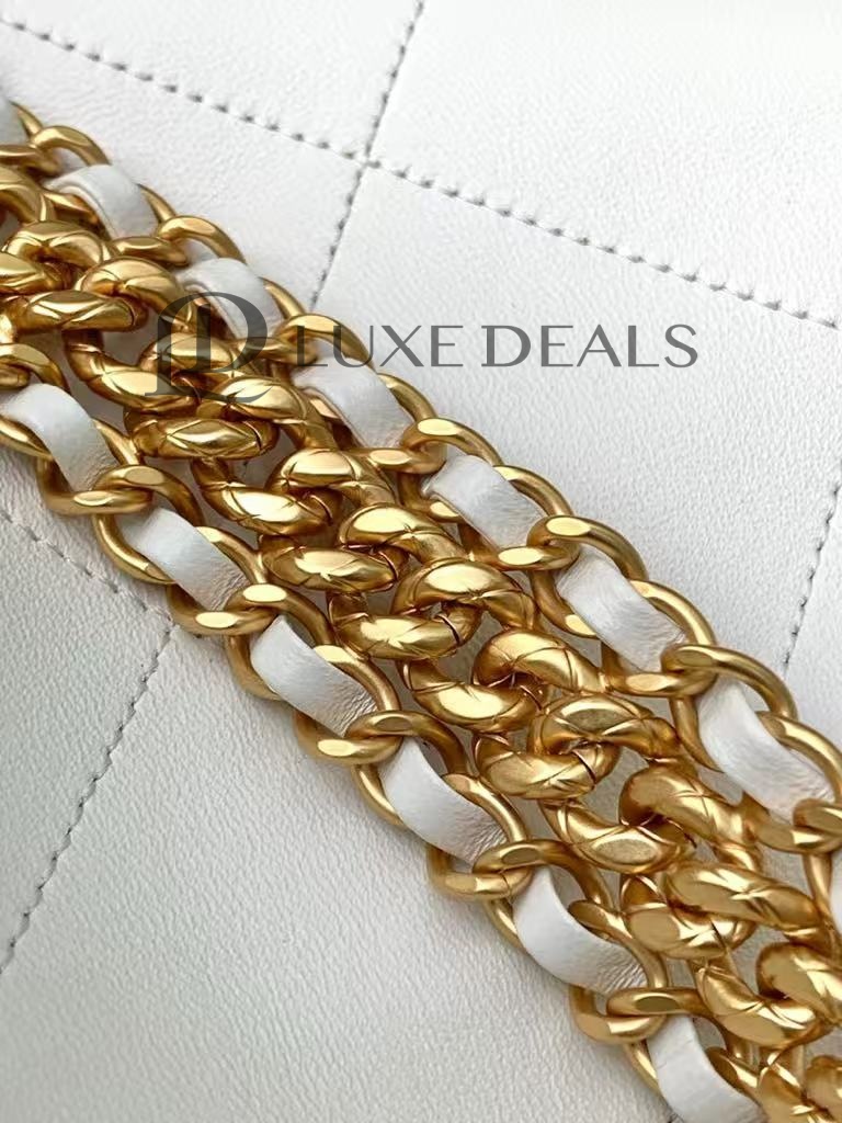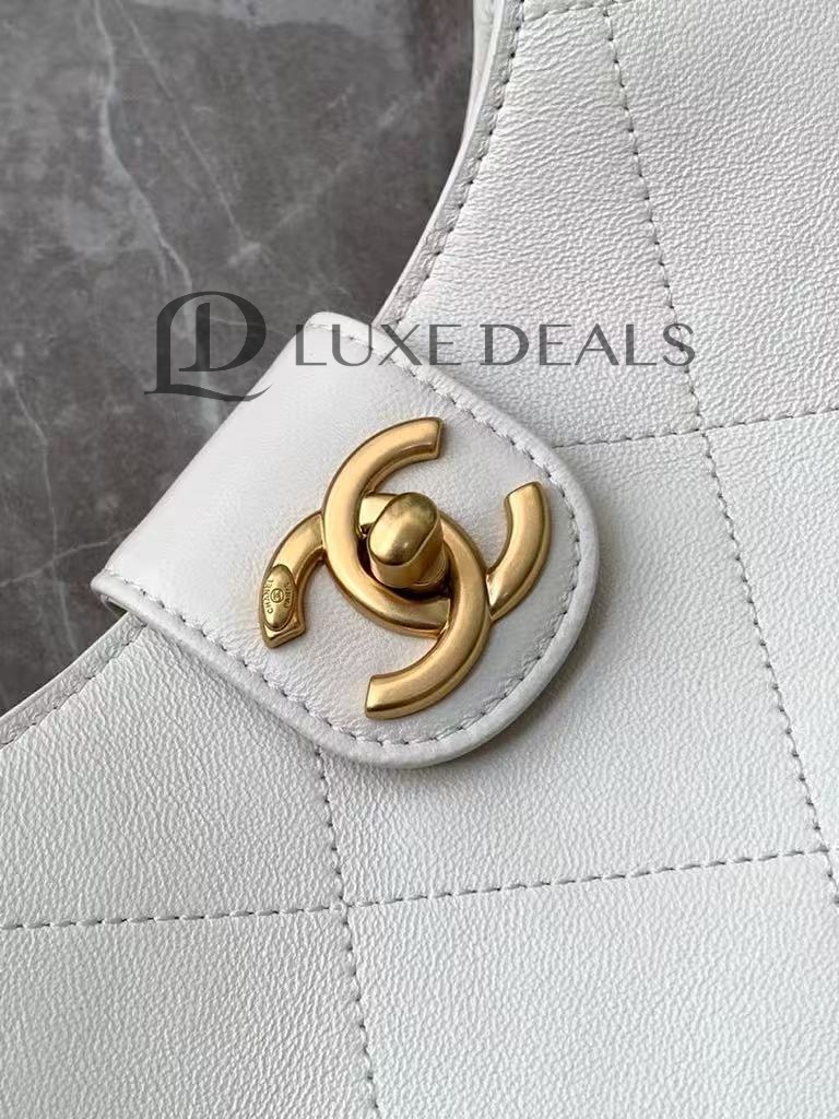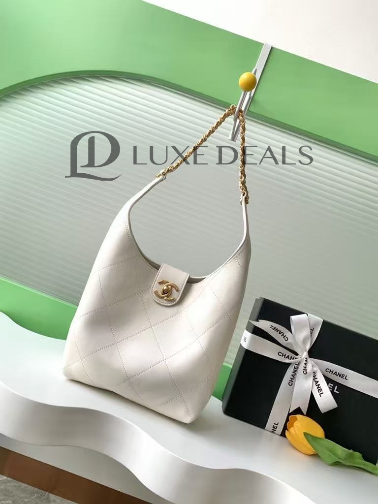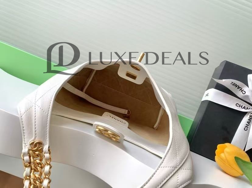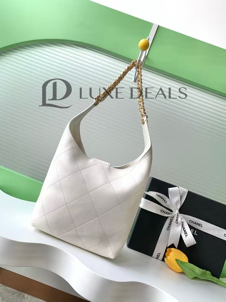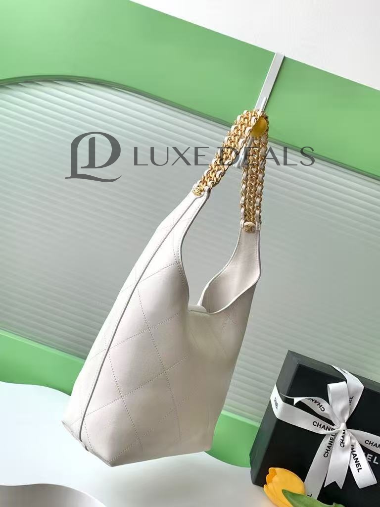 CH@NEL WHITE LEATHER CHAIN HOBO BAG(27*23*21cm)