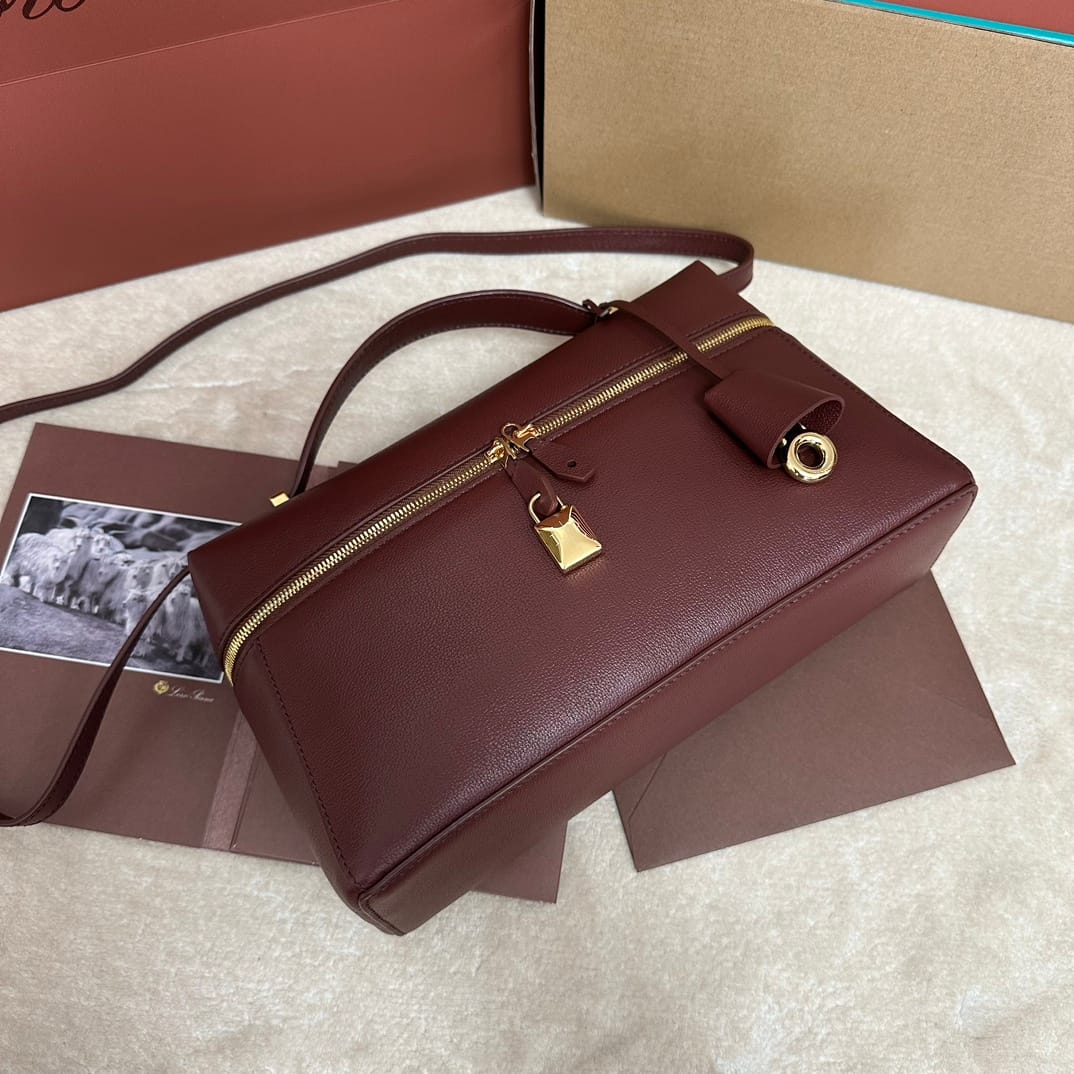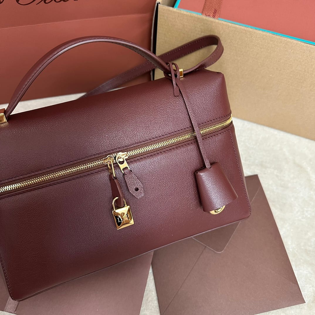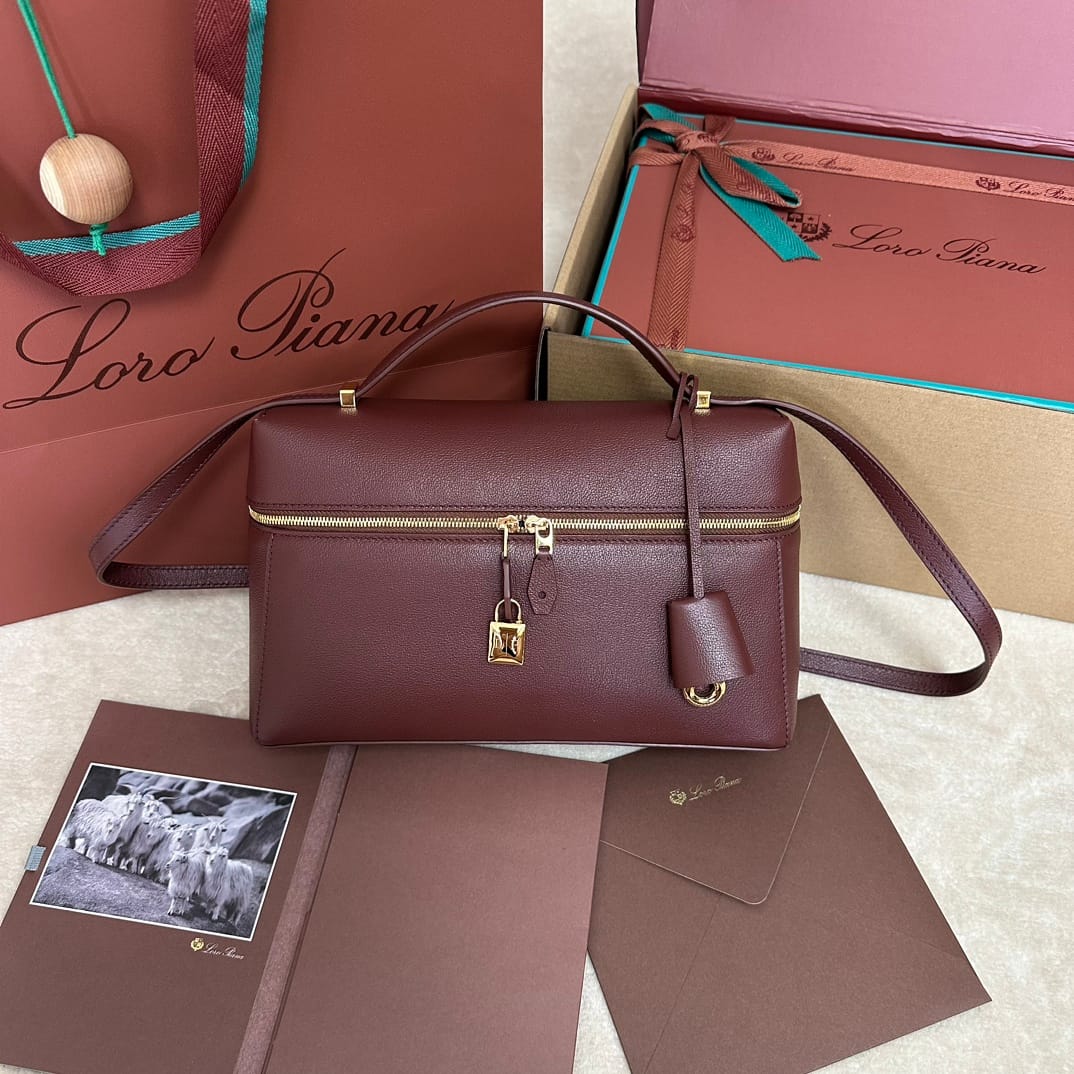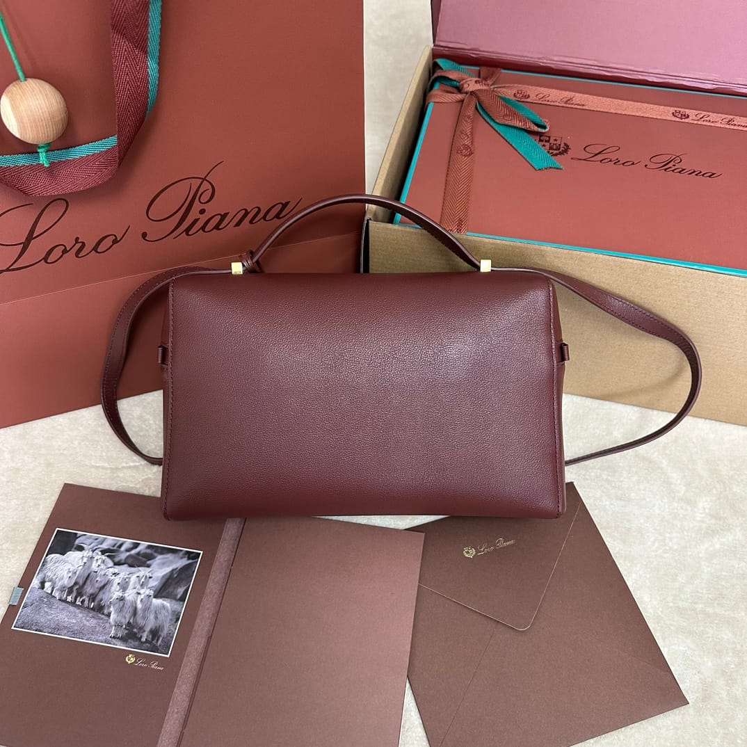 Leather pocket inside featuring the new signature press stud in the shape of Loro Piana ring, with laser engraved logo