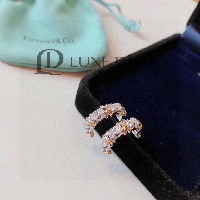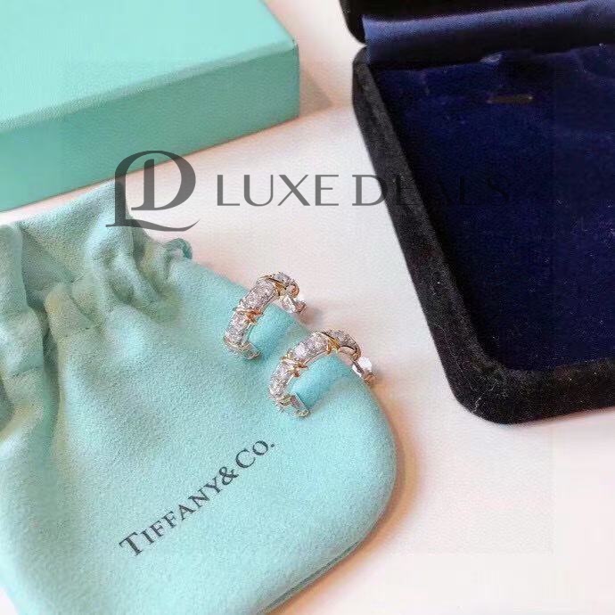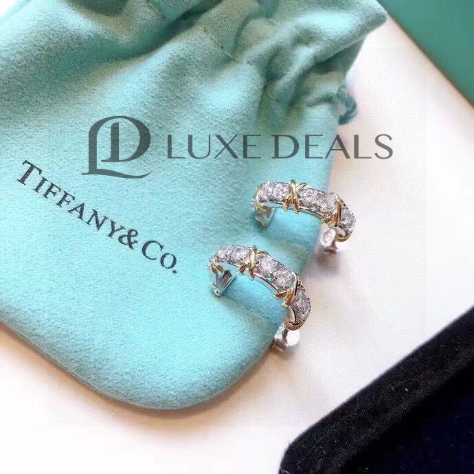 TIFFANY & CO. Серьги с бриллиантами Schlumberger из желтого золота 18 карат/платины 1,8 карата серебристый металлик