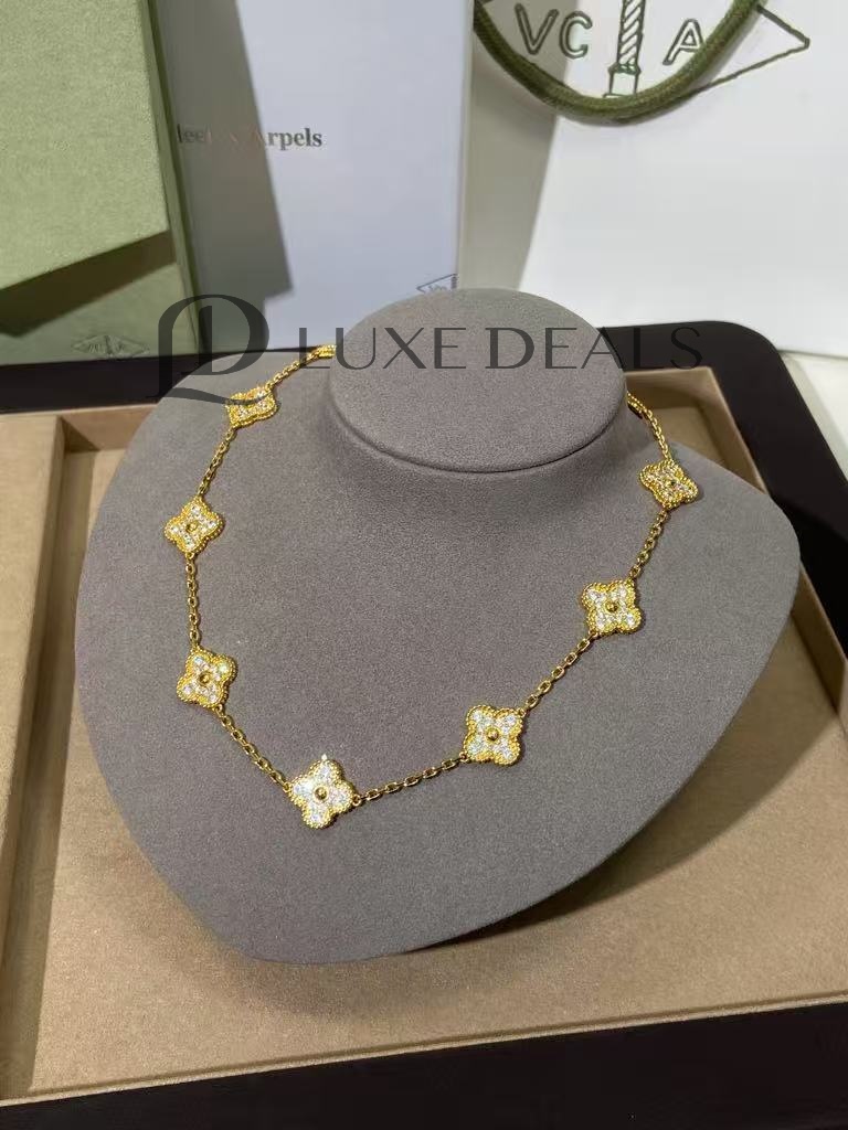 VCA ВИНТАЖНОЕ ОЖЕРЕЛЬЕ АЛЬГАМБРА, 10 МОТИВОВ - ЖЕЛТОЕ ЗОЛОТО, БРИЛЛИАНТ VCARA42300